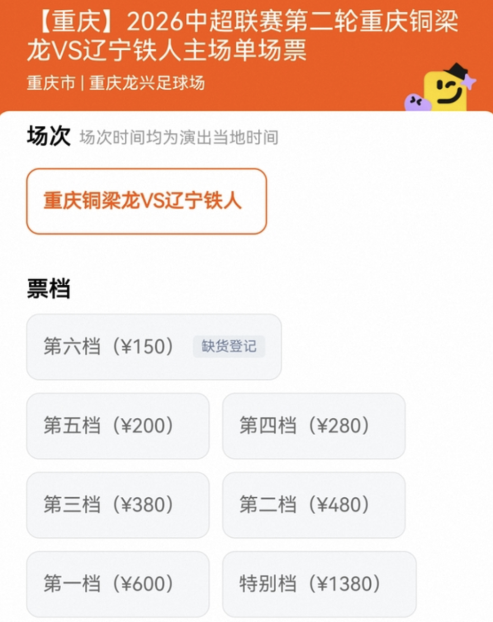 更让球迷愤怒的是主场的昂贵票价。资料显示,重庆铜梁龙的主场票价有多个档位,分别是150元/200元/280元/380元/480元/600元/1380元。
