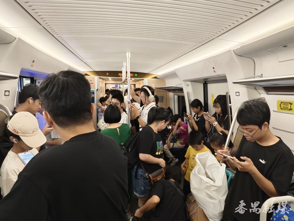 城际铁路方面,广东城际运营公司所辖城际铁路“双节”假期单日最高客流同样出现在10月1日,为23万人次。八天假期,广惠、广肇城际铁路共发送旅客98.0万人次;广清、广州东环城际铁路(花都-白云机场北)共发送旅客18.2万人次;9月底开通的广州东环城际铁路(番禺-白云机场北)、琶莲城际铁路、广惠城际北延段(小金口-惠州北)发送旅客22.6万人次。